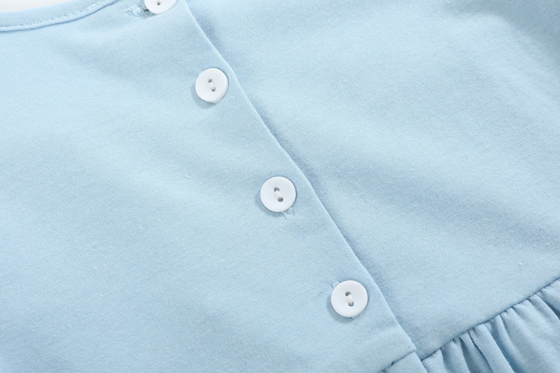 Celebrate the holiday season in style with this cheery Light Blue Christmas Tree Smocked Knit Dress! Featuring delightful ruffle details and smocking adorned with embroidered Christmas trees and tiny bows, it’s brimming with festive charm. The rickrack trim adds a playful touch, making this dress perfect for holiday gatherings, photos, and joyful moments. Soft and cozy, it’s designed for comfort and holiday cheer!