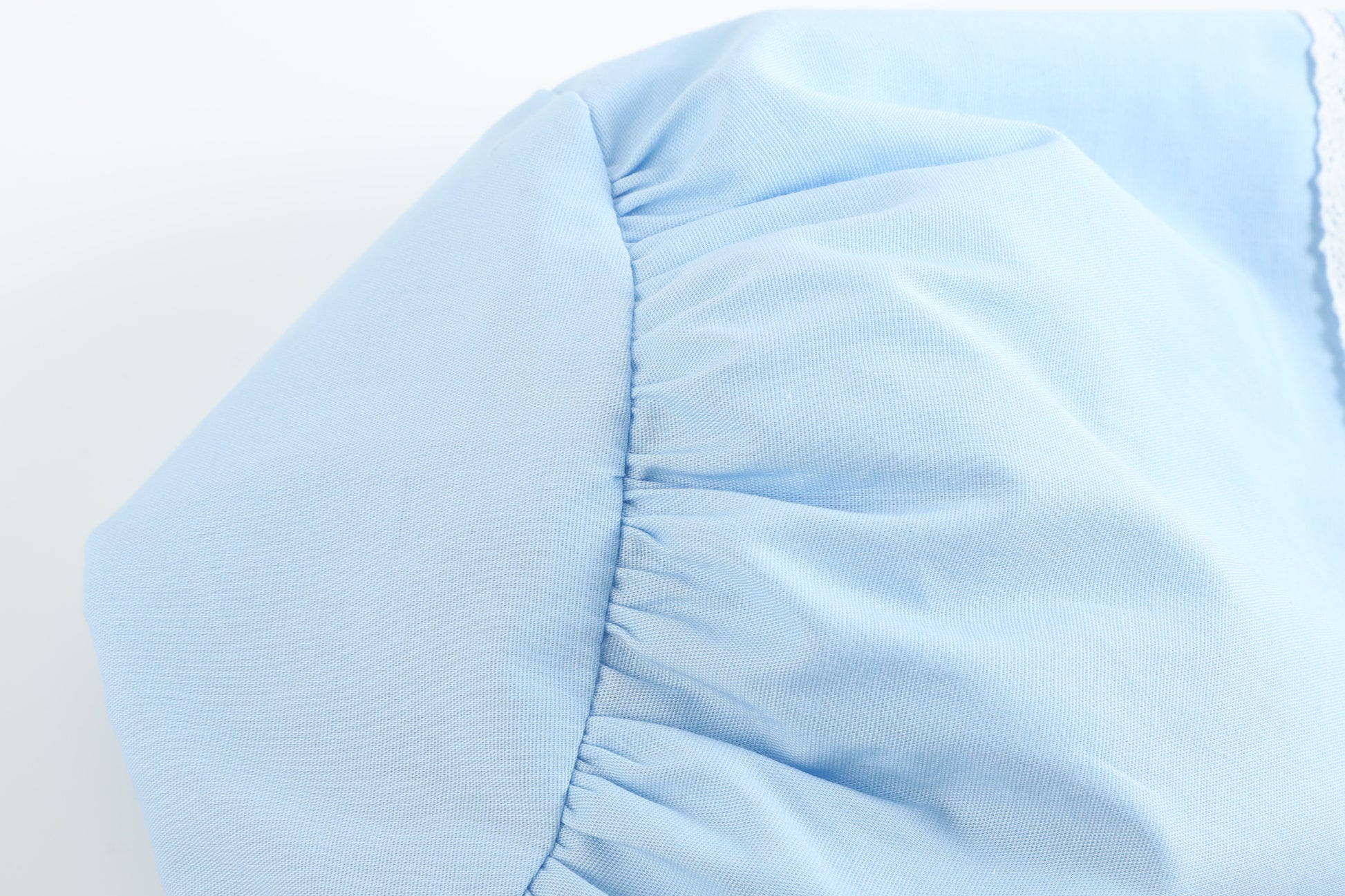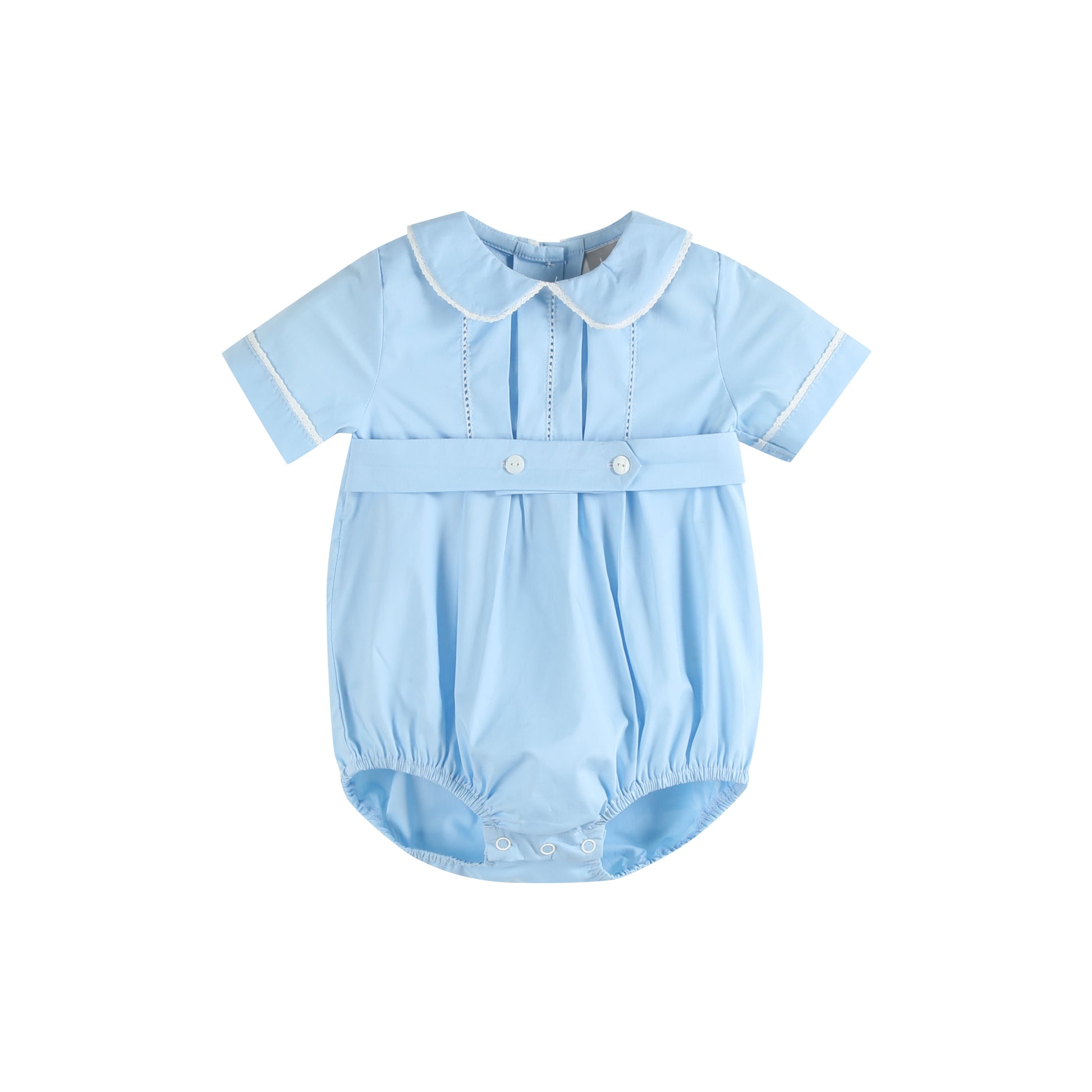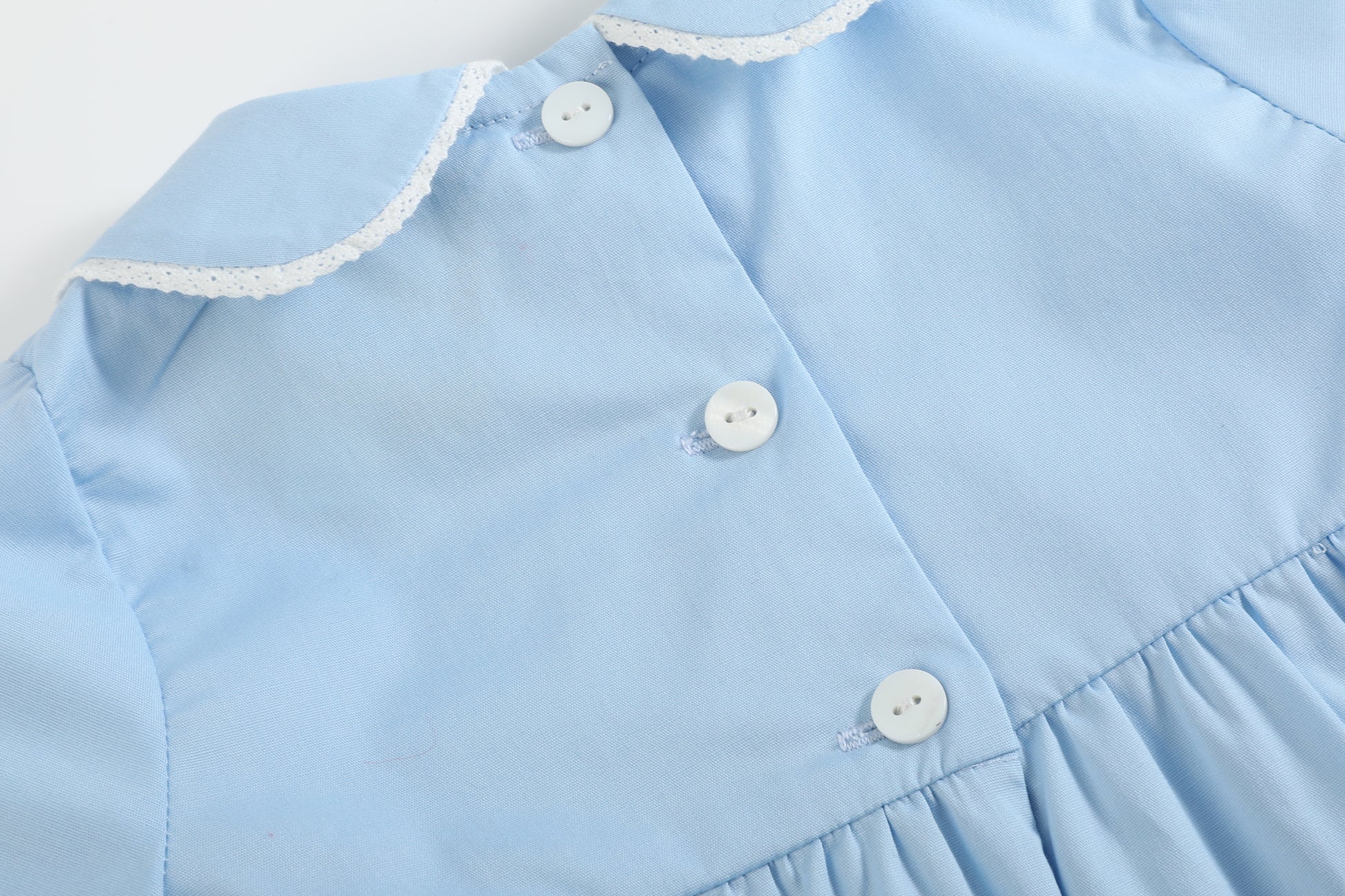 Introducing our exquisite Light Blue Collared Button Romper with Bonnet, designed with meticulous boutique-quality details for your little one. This charming ensemble features delicate lace trim and button accents, perfectly complemented by a trimmed collar for a touch of elegance. Crafted with comfort and style in mind, it's ideal for any special occasion or everyday wear. Dress your baby in timeless sophistication with this adorable romper set.