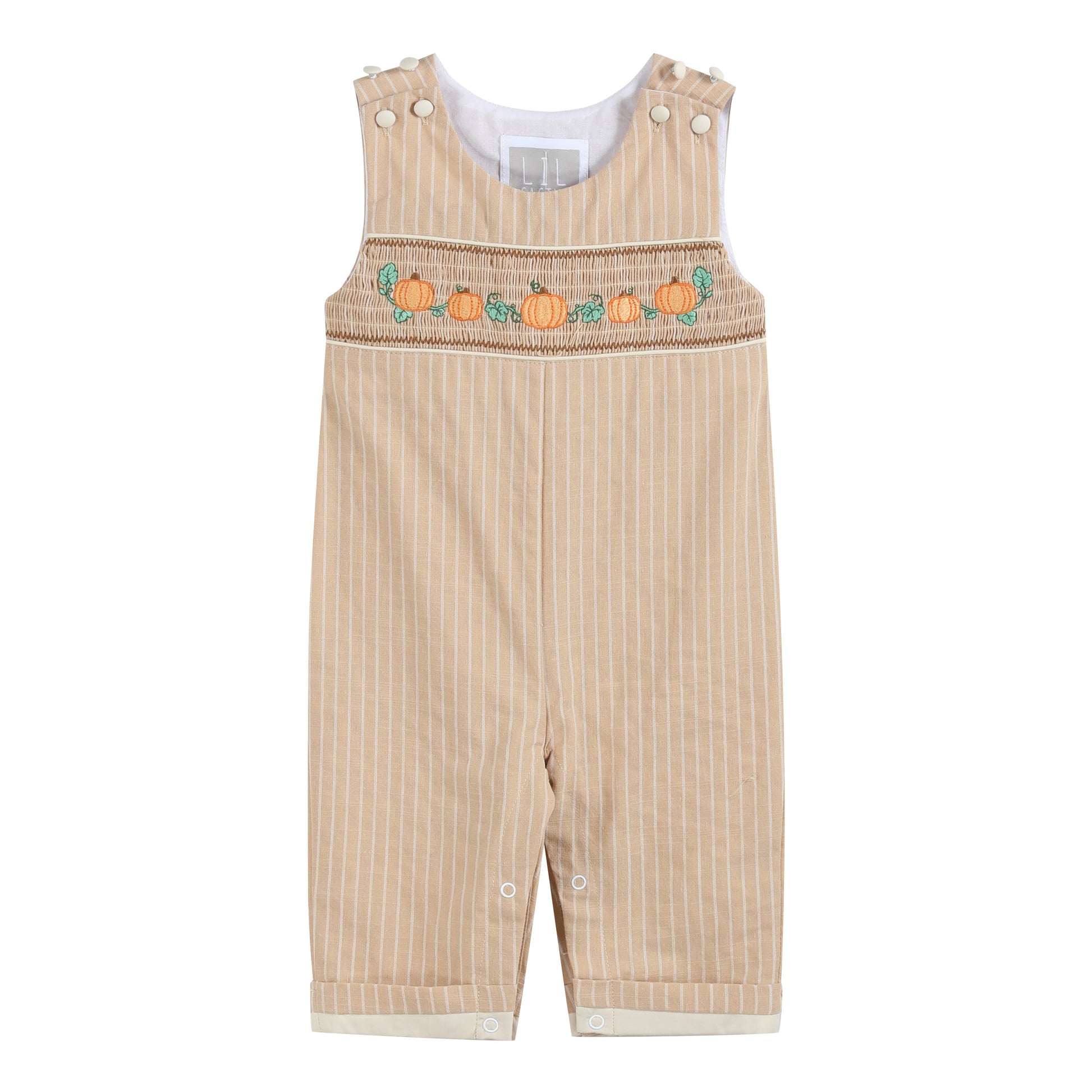 Light Brown Pinstripe Pumpkin Smocked Overalls