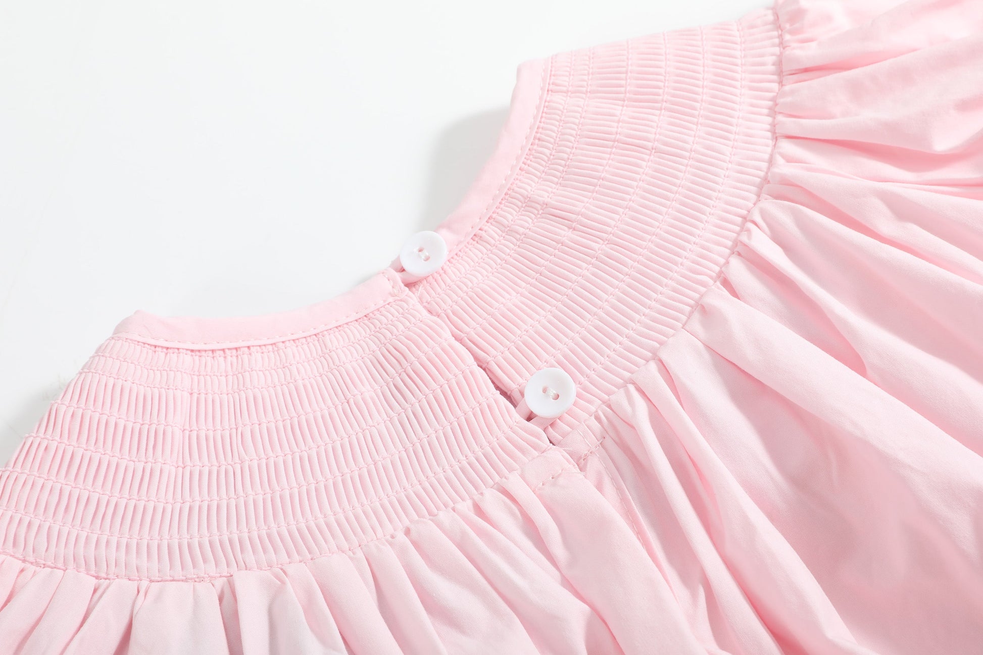 Make the holidays extra sweet with the Pink Christmas Smocked Bishop Dress. Made from 100% cotton, this classic bishop-style dress features a smocked neckline with festive embroidery and pretty red trim accents. The traditional calf- to ankle-length silhouette ensures comfort and timeless style for your little one.
