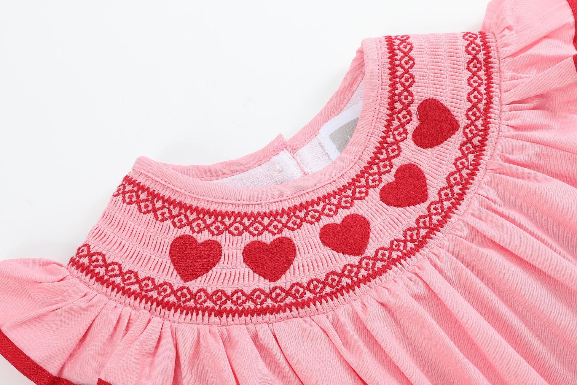 Celebrate love in the sweetest way with our Pink Hearts Valentine Smocked Romper! Made from 100% soft cotton, this adorable one-piece features classic pink gingham and delicate smocking around the neckline, beautifully embroidered with pretty hearts. Snaps at the crotch ensure easy diaper changes, making it as practical as it is precious. Perfect for Valentine’s Day or showing love year-round, this romper is a must-have for your little sweetheart’s wardrobe.