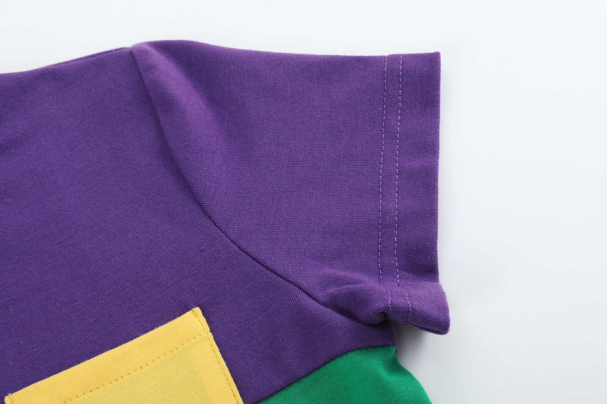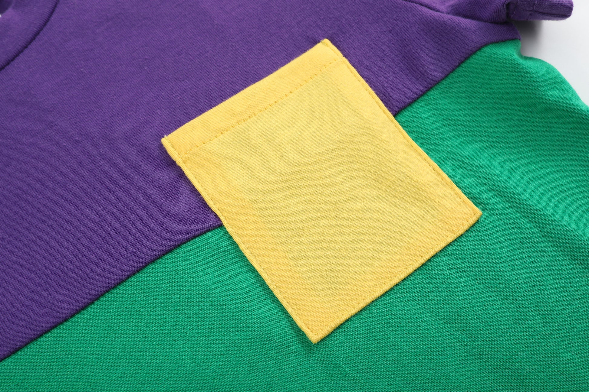 Let him join the Mardi Gras fun in style with our Purple, Green and Gold Shirt and Shorts Set! This playful outfit features a soft cotton top with bold color blocking in green and purple, finished with a cheerful yellow pocket for an extra pop of festive flair. Paired with coordinating shorts, this set is perfect for parades, parties, and all the fun that comes with the season. Comfy, colorful, and full of personality—just right for your little reveler!
