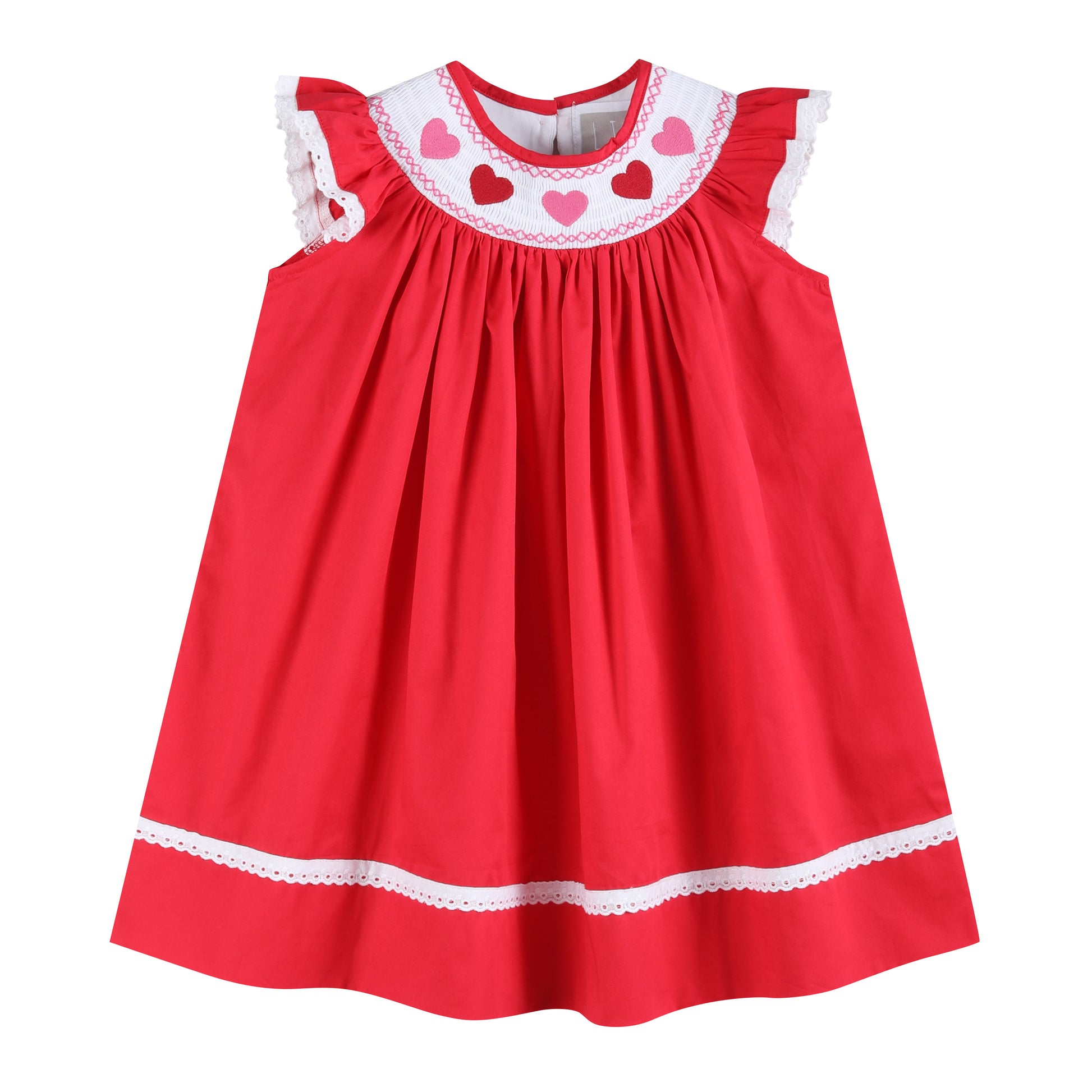 Celebrate love in timeless style with our Red Heart and Lace Smocked Bishop Dress. Made from soft, breathable cotton, this vibrant red dress features a beautifully smocked neckline adorned with delicate embroidered hearts. Elegant white lace trim adds a sweet, vintage-inspired touch that makes this dress perfect for Valentine’s Day, special occasions, or any day she wants to feel extra lovely. Classic bishop styling ensures a comfortable fit and graceful silhouette.