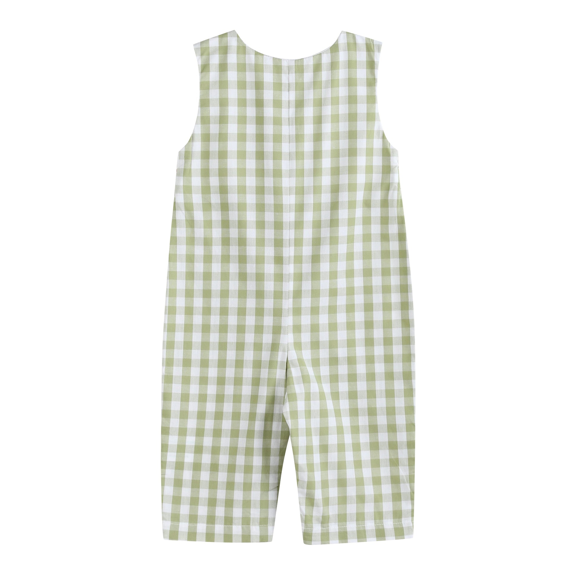 Your little pumpkin will look adorable in these Sage Green Gingham Pumpkin Smocked Overalls. Made from 100% cotton, this classic fall style features a smocked panel with embroidered pumpkins and a soft sage green gingham fabric. Adjustable shoulder buttons provide room to grow, while snaps at the crotch make changes easy and quick.