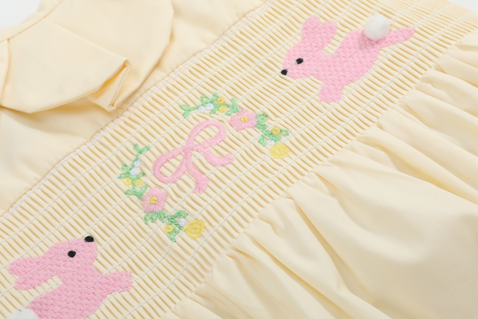 ["Easter","Embroidery","Girl","Girls","Romper","Rompers","Smock","Smocked","Smocking","Spring","Summer","wholesale","wholesale-only"]